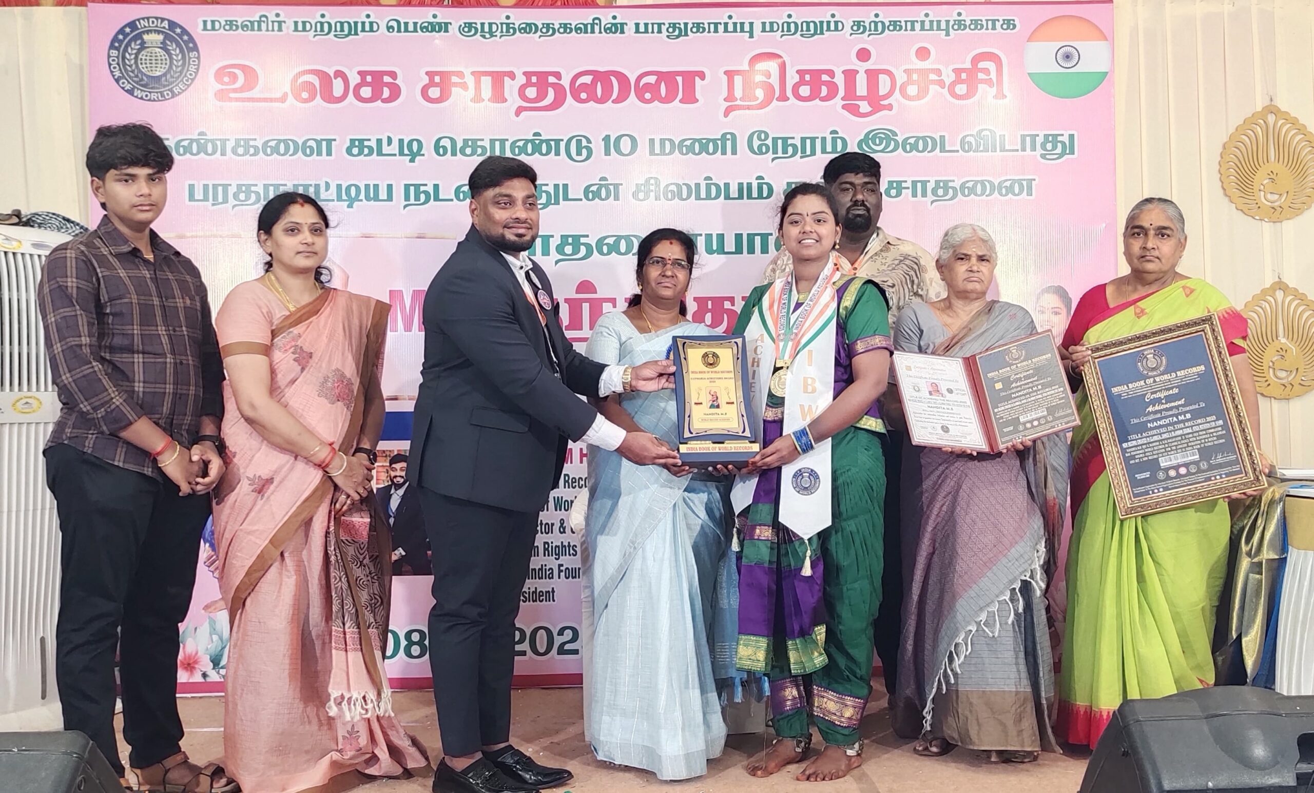 காலை 4 மணி முதல் மதியம் இரண்டு மணி வரை தொடர்ந்து நடனம் ஆடியபடி சிலம்பம் சுழற்றி இவர் செய்த சாதனை இந்தியா உலக சாதனை புத்தகத்தில் இடம் பிடித்தது.