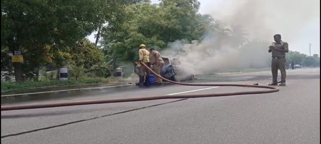 நெடுஞ்சாலையில் கார் தீ விபத்து நடந்த சம்பவம் அப்பகுதியில் பெரும் பரபரப்பை ஏற்படுத்தியது.
