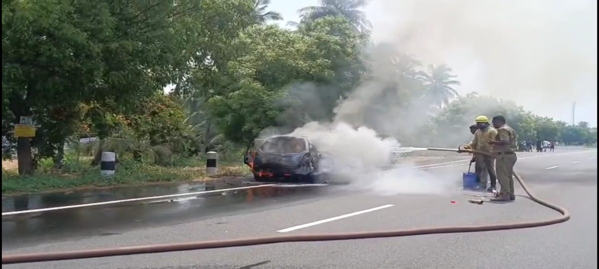 நெடுஞ்சாலையில் கார் தீ விபத்து நடந்த சம்பவம் அப்பகுதியில் பெரும் பரபரப்பை ஏற்படுத்தியது.