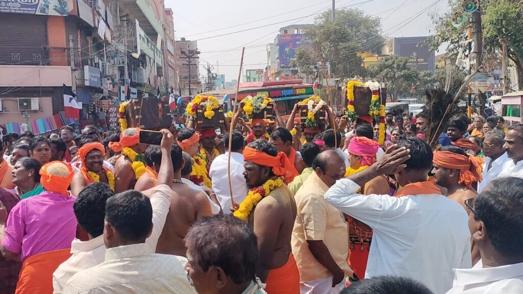 இந்நிலையில் இன்று உசிலம்பட்டி சின்ன கருப்பு கோவிலிருந்து சுமார் 10 கிலோமீட்டர் தொலைவிலுள்ள பாப்பாபட்டியில் உள்ள ஒச்ச்சாண்டம்மன் கோவிலுக்கு மாசி பெட்டி எடுக்கும் திருவிழா வெகுவிமர்சையாக நடைபெற்றது.,