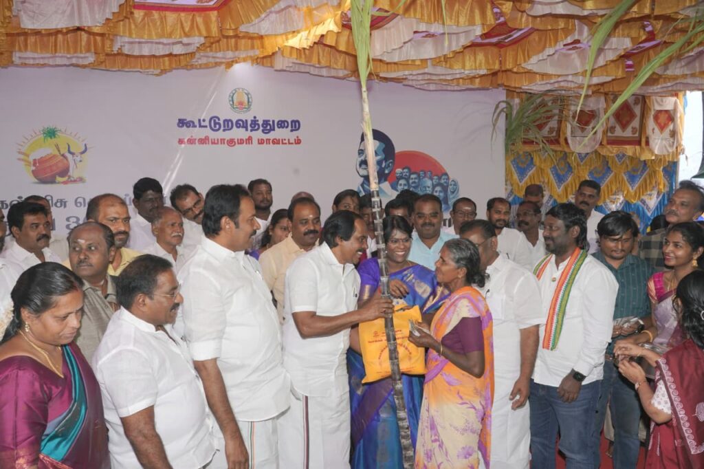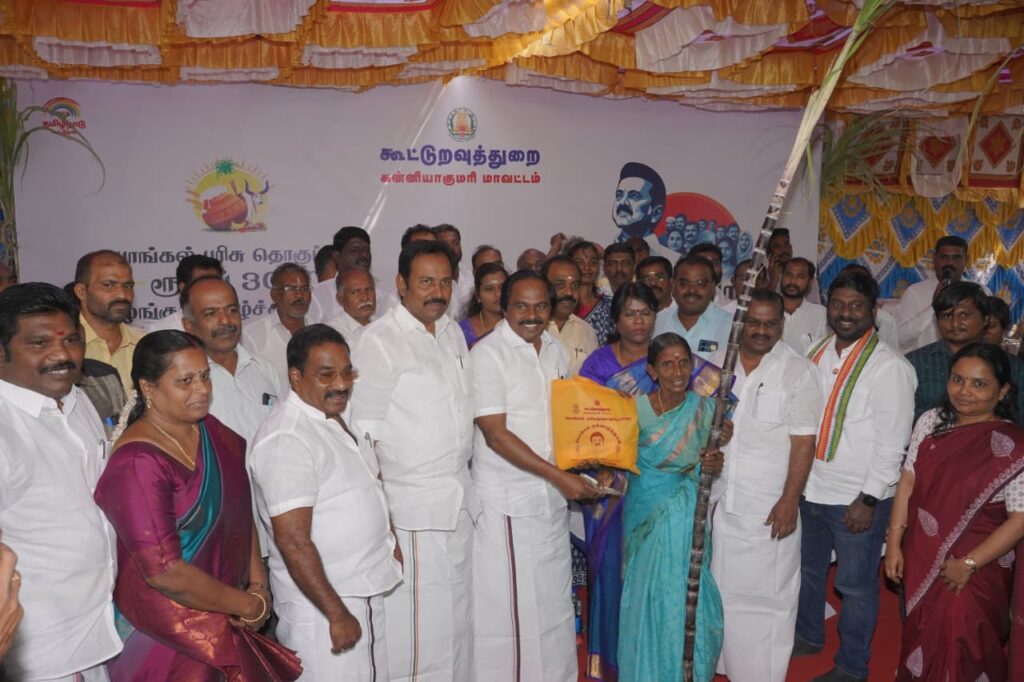 குமரி மாவட்டம் சார்பில் நாகர்கோவில் மாநகராட்சி பகுதிக்கு உட்பட்ட முகிலன் விளையில் அமைச்சர் சட்டமன்ற உறுப்பினர் மேயர் பயனாளிகளுக்கு பொங்கல் பரிசாக ரூ.3000.00 வழங்கினார்.