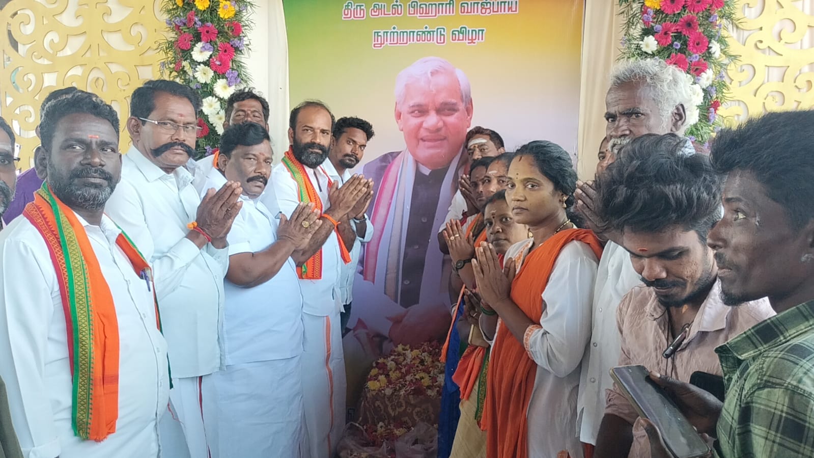மறைந்த பாரத பிரதமர் பாரத ரத்னா அடல் பிஹாரி வாஜ்பாயின் 100- வது பிறந்த நாளை முன்னிட்டு பெரம்பலூர் நான்கு ரோடு பகுதியில் அவரது திருவுருவப்படத்திற்கு பாஜக பெரம்பலூர் மாவட்ட தலைவர் முத்தமிழ் செல்வன் தலைமையில் பாஜகவினர் மாலை அணிவித்து மலர் தூவி மரியாதை செலுத்தினர் .