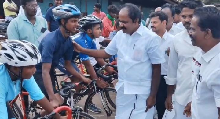சைக்கிள் போட்டிகளை கொடியசைத்துத் துவக்கி வைத்த மெய்யநாதன்..,