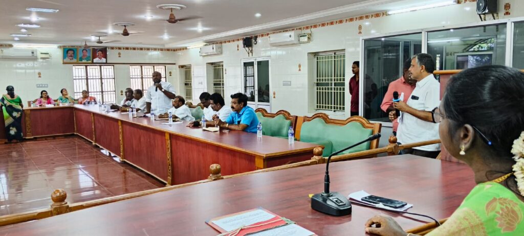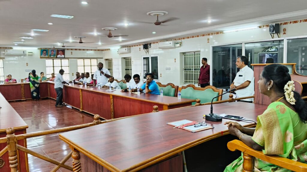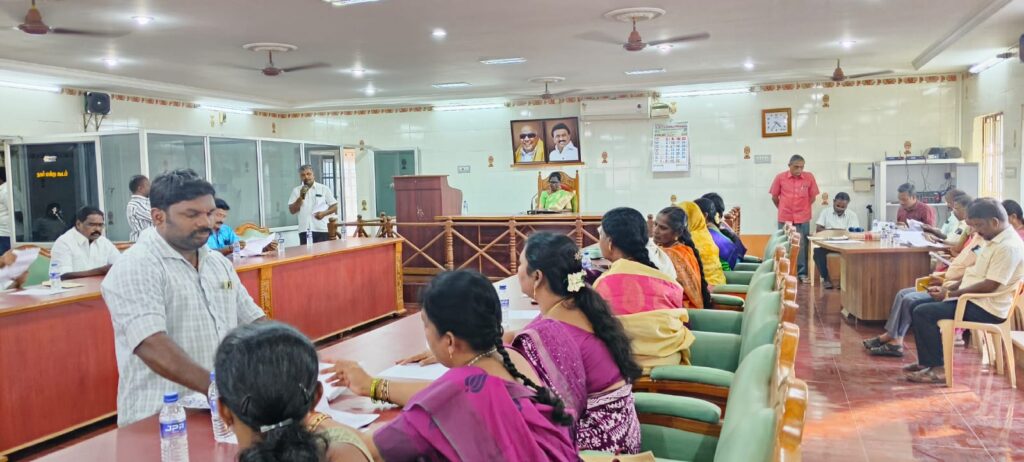 உறுப்பினர் சாதிக் – எனது பாட்டில் தார் சாலைகள் போட வேண்டி உள்ளது கழிவுநீர் வடிகால் வசதிகள் அமைக்க வேண்டி உள்ளது மக்கள் வசதிக்காக உடனடியாக செய்து தர வேண்டும். உதவிபொறியாளர் சந்தோஷ் – சாக்கடை கால்வாய் பணிகள் மற்றும் தாருரோடு பணிகளுக்கு 10 கோடி ரூபாய் அரசிடம் நிதி கேட்டுள்ளோம். நிதி வந்தவுடன் வடிகால் வசதி அமைத்து தரப்படும்.