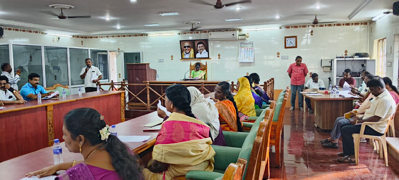 உறுப்பினர் சாதிக் – எனது பாட்டில் தார் சாலைகள் போட வேண்டி உள்ளது கழிவுநீர் வடிகால் வசதிகள் அமைக்க வேண்டி உள்ளது மக்கள் வசதிக்காக உடனடியாக செய்து தர வேண்டும். உதவிபொறியாளர் சந்தோஷ் – சாக்கடை கால்வாய் பணிகள் மற்றும் தாருரோடு பணிகளுக்கு 10 கோடி ரூபாய் அரசிடம் நிதி கேட்டுள்ளோம். நிதி வந்தவுடன் வடிகால் வசதி அமைத்து தரப்படும்.