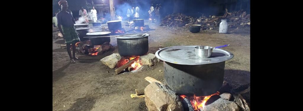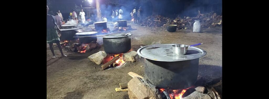 இன்று நடந்த கறி விருந்தில் புண்ணாபட்டி, காட்டுவேலம்பட்டி, முளையூர், வேலாயுதம்பட்டி, குட்டூர் உள்ளிட்ட பல்வேறு பகுதிகளைச் சேர்ந்த ஆண்கள் கலந்து கொண்டனர்.