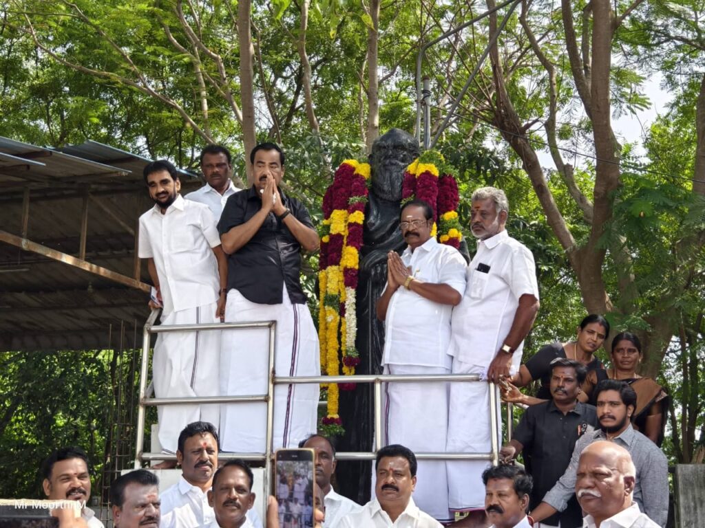 முன்னதாக,மங்காய் பிள்ளையார் கோயில் அருகே உள்ள எம்ஜிஆர் சிலைக்கும் , அரியலூர் நகராட்சி பேருந்து நிலையம் முன்புள்ள எம்ஜிஆர், ஜெயலலிதா சிலை களுக்கும் , அதனை தொடர்ந்து செட்டியேரி க்கரை பூங்காவில் அமைந்துள்ள தந்தை பெரியார் சிலைக்கும், முன்னாள் அரசு தலைமை கொறடா , மாவட்ட அதிமுக செயலாளர் தாமரை எஸ். இராஜேந்திரன் தலைமையில் முன்னாள் எம்பி ஆ.இளவரசன், முன்னாள் எம்எல்ஏ ப.இளவழகன், மாவட்ட நிர்வாகிகள் பவானி, அன்பழகன், சார்பு அணிநிர்வாகிகள் ஓபிசங்கர், ந .பிரேம்குமார், சிவசங்கர், ஜீவா அரங்கநாதன், திருமுருகன்,ஓ வெங்கடா ஜலபதி, நகரச் செயலாளர் ஏ.பி.செந்தில், ஒன்றியச் செயலாளர்கள் பொய்யூர் பாலசுப்பிரமணியம், செல்வராசு அதிமுக நிர்வாகிகள் ஏ.பி. ஜோதிவேல், தளபதி கணேசன், கே.கருணாநிதி, உட்பட பலரும் கலந்து கொண்டு மாலை அணி வித்து மரியாதை செலுத்தினர்.
