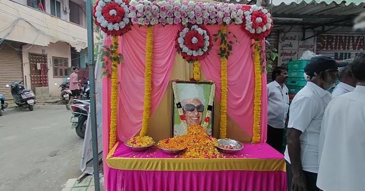 எம்.ஜி.ஆர் அவர்களின் திருவுருவ படத்திற்கு மலர்தூவி மரியாதை செய்தார்.