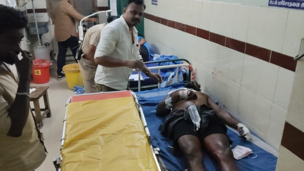 அங்கு தீவிர சிகிச்சை அளிக்கப்பட்டு வருகிறது. தகவலறிந்த உத்தமபாளையம் துணை போலீஸ் சூப்பிரண்டு வெங்கடேசன் மற்றும் இன்ஸ்பெக்டர்கள் முத்துலட்சுமி ,வனிதாமணி ஆகியோர் சம்பவ இடத்திற்கு விரைந்து வந்தனர். பின்னர் டாஸ்மாக் கடையில் பொருத்தப்பட்டிருந்த சிசிடிவி கேமராவில் பதிவான காட்சி மற்றும் அப்பகுதியில் போலீசார் நடத்திய விசாரணையின் அடிப்படையில் நெல்லுகுத்தி புளியமரம் தெருவைச் சேர்ந்த 5 பேரை பிடித்து போலீசார் விசாரணை மேற்கொண்டு வருகின்றனர். டாஸ்மாக் கடை அருகே இரவில் பால் வியாபாரியை அரிவாளால் வெட்டிய சம்பவம் கம்பத்தில் பெரும் பரபரப்பை ஏற்படுத்தியது குறிப்பிடத்தக்கது.