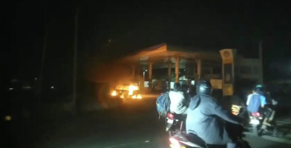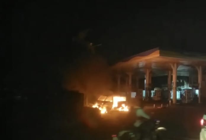 அப்பொழுது அந்த மினி வேன் தீப்பிடித்து எறிய தொடங்கியது. அந்த பகுதியில் காற்று வேகமாக வீசியதால், தீ மளமளவென பிடித்து மினிவேனின் மற்ற பகுதிகளுக்கு பரவியது. இதனால் அதிர்ச்சி அடைந்த பெட்ரோல் பங்க் ஊழியர்கள் அங்கு இருந்த தீ கட்டுப்பாட்டு கருவியில் உள்ள பவுடரை தீப்பிடித்து எரிந்த மினி வேனின் மீது பீச்சு அடித்தனர் . ஆனாலும் தீயை கட்டுப்படுத்த முடியவில்லை.