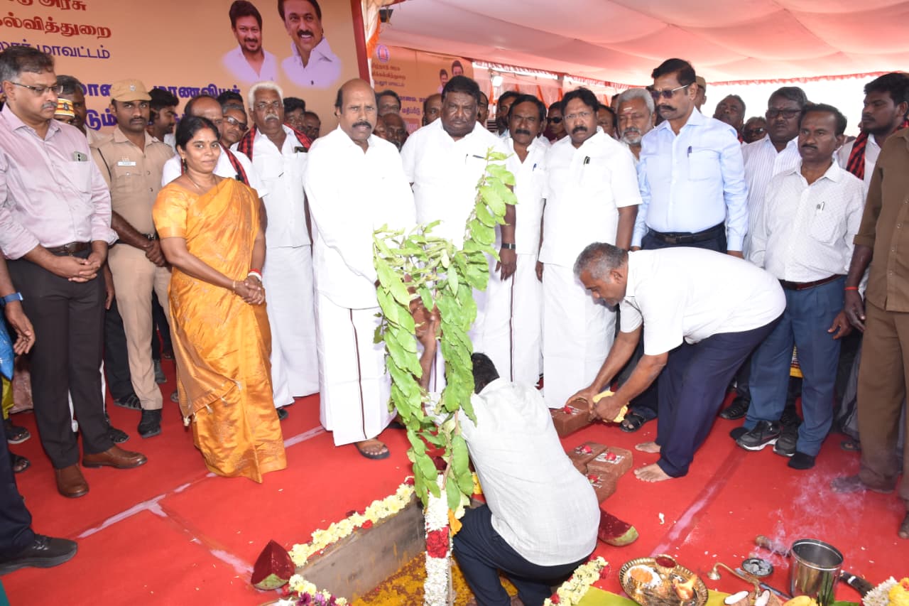பெரம்பலூர் மாவட்டம், குன்னம் வட்டத்திற்குட்பட்ட பெரியவெண்மணியில் ரூ.56 கோடி மதிப்பில் 7 ஏக்கர் பரப்பளவில் அரசு மாதிரி மேல்நிலைப்பள்ளி கட்டடம் மற்றும் மாணவர், மாணவியர் விடுதி கட்டடங்கள் கட்டுவதற்கு போக்குவரத்து மற்றும் மின்சாரத்துறை அமைச்சர் சா.சி.சிவசங்கர் முன்னிலையில் பொதுப்பணித்துறை மற்றும் நெடுஞ்சாலைகள் துறை அமைச்சர் எ.வ.வேலு பூமி கட்டுமான பணியினை தொடங்கி வைத்து அடிக்கல் நாட்டினார்.