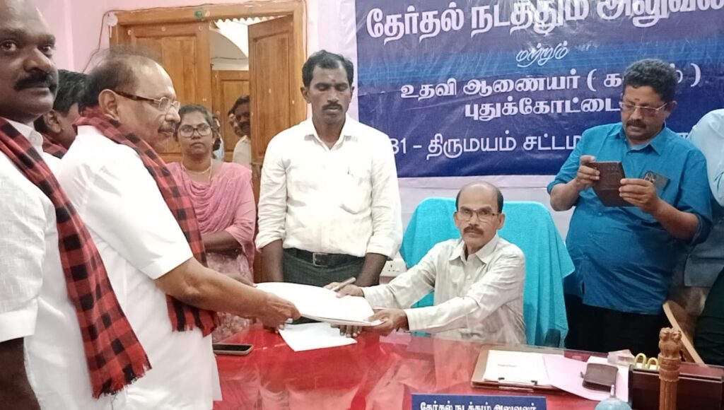 தமிழக சட்டசபை தேர்தல் களம் உச்சக்கட்ட பரபரப்பை எட்டியுள்ள நிலையில், வேட்புமனு தாக்கல் செய்ய இன்று கடைசி நாள் என்பதால் திருமயம் தொகுதியில் அரசியல் கட்சிகளின் பலப்பரீட்சை களைகட்டியது.