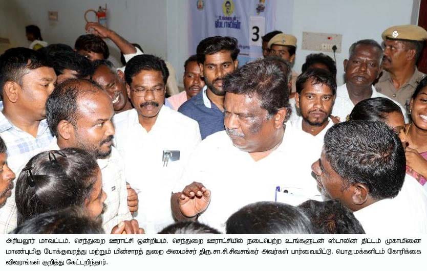 அரியலூர் மாவட்டம், செந்துறை ஊராட்சி ஒன்றியம். செந்துறை ஊராட்சியில் நடைபெற்ற உங்களுடன் ஸ்டாலின் திட்டம் முகாமினை , போக்குவரத்து மற்றும் மின்சாரத் துறை அமைச்சர் சா.சி.சிவசங்கர் நேரில் பார்வையிட்டார்.