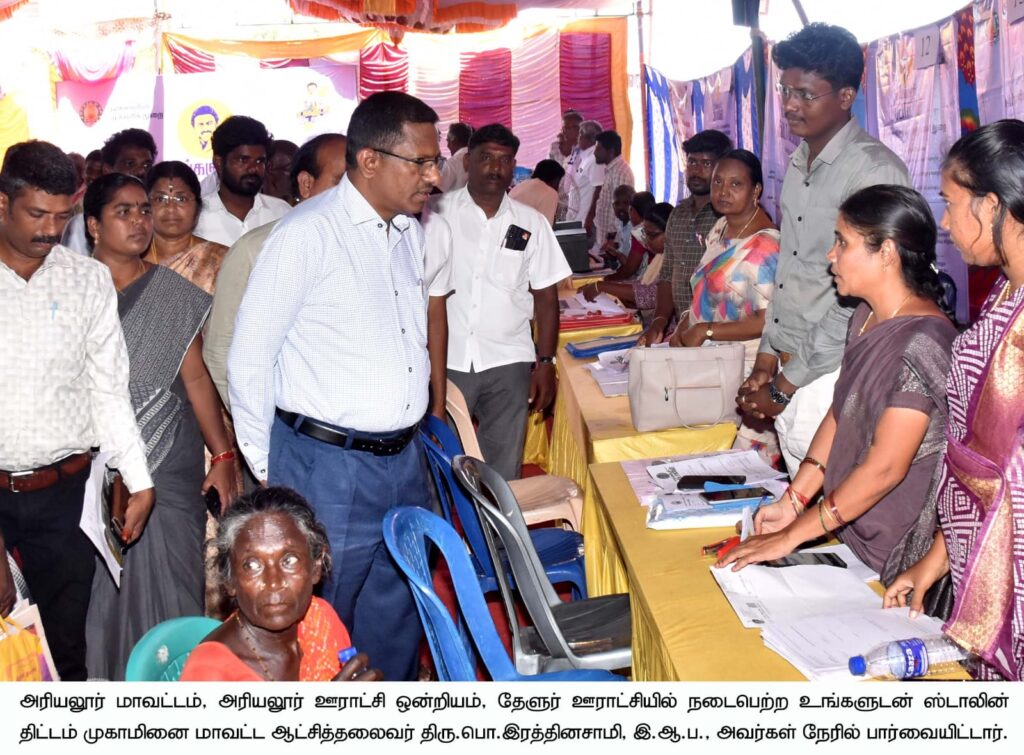 முன்னதாக, மாவட்ட ஆட்சியர் பொ.இரத்தினசாமி, செந்துறை ஊராட்சி, ஜெயங்கொண்டம் நகராட்சி அலுவலகம், தேளுர் ஊராட்சி ஆகிய பகுதிகளில் நடைபெற்ற உங்களுடன் ஸ்டாலின் முகாமினை பார்வையிட்டார்.