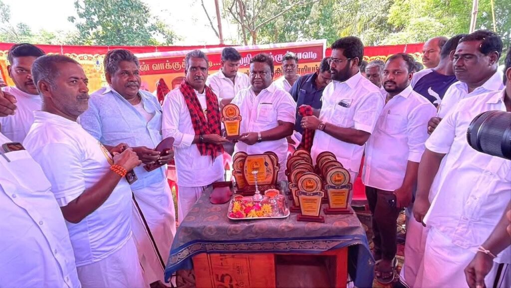 அரியலூர் மாவட்டம், ஜெயங்கொண்டம் சட்டமன்ற தொகுதிக்குட்பட்ட, ஜெயங்கொண்டம் மத்திய ஒன்றிய திமுக சார்பில்,ஓரணியில் தமிழ்நாடு உறுப்பினர் சேர்க்கையில் சிறப்பாக பணியாற்றிய அனைத்து BLA2 & BDA நிர்வாகிகளின் செயல்பாட்டை பாராட்டி, மாவட்ட திமுக செயலாளர் போக்குவரத்து மற்றும் மின்சாரத்துறை அமைச்சர் சா.சி.சிவசங்கர் பாராட்டு கேடயம் வழங்கினார்.