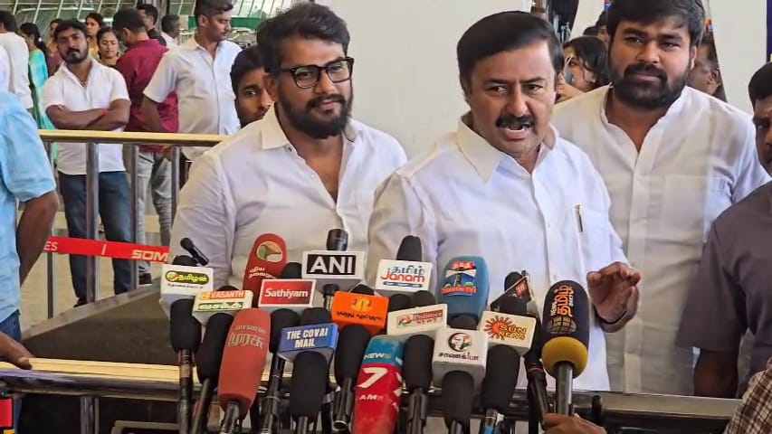 கோவை விமான நிலையத்திற்கு வருகை புரிந்த தமிழ்நாடு தமிழ் வளர்ச்சி மற்றும் செய்தி தொடர்பு துறை அமைச்சர் சாமிநாதன் செய்தியாளர்களுக்கு பேட்டியளித்தார்.