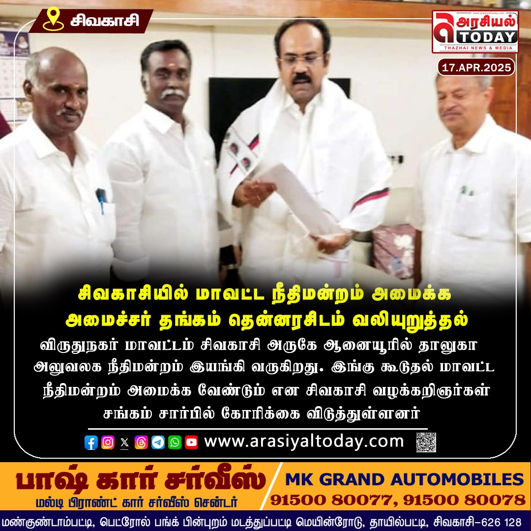 நீதிமன்றம் அமைக்க அமைச்சர் தங்கம் தென்னரசிடம் வலியுறுத்தல்..,