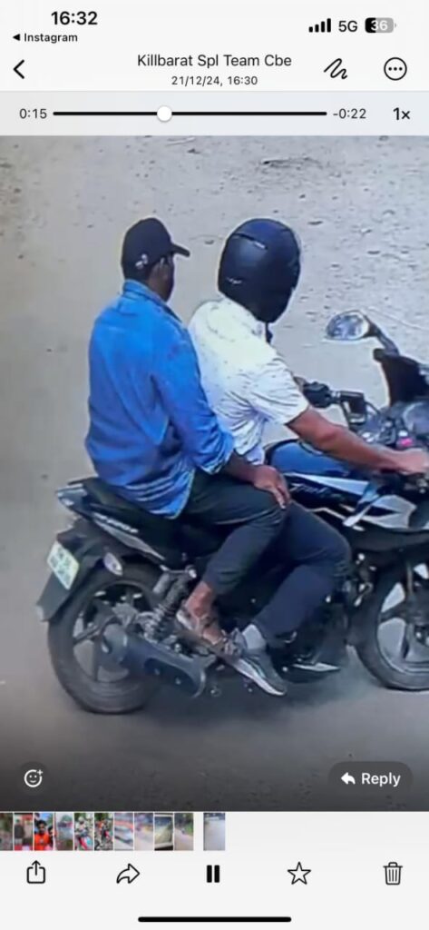 கோவை, வடவள்ளி பெரியார் நகர் பகுதியைச் சேர்ந்தவர் ரமேஷ். இவரது மனைவி கலைவாணி. மாநகராட்சி பள்ளியில் ஆசிரியராக பணிபுரிந்து வருகிறார். இந்நிலையில் கடந்த 20.12.2024 அன்று, கலைவாணி பள்ளிக்குச் சென்ற நேரத்தில், அவருடைய கணவர் அவருக்கு மதிய உணவு கொடுப்பதற்காக சென்று இருக்கிறார். வீட்டில் யாரும் இல்லாததை தெரிந்து கொண்ட மர்ம நபர்கள் வீட்டின் கதவை உடைத்து வீட்டில் இருந்த 58 பவுன் நகையை திருடிச் செல்லும் பொழுது, ரமேஷ் வந்து இருக்கிறார். அவரை தள்ளி விட்டு விட்டு அங்கு வந்த இருவர் இருசக்கர வாகனத்தில் தப்பி சென்று உள்ளனர்.