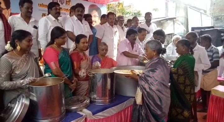 இதனைத் தொடர்ந்து, சமூக நலத்திட்டத்தின் ஒரு பகுதியாக ஏழை மற்றும் எளிய மக்களுக்கு அன்னதானம் வழங்கப்பட்டது. சுமார் 1500 பேருக்கு உணவு வழங்கப்பட்டு மனிதநேய சேவையுடன் விழா சிறப்பிக்கப்பட்டது.