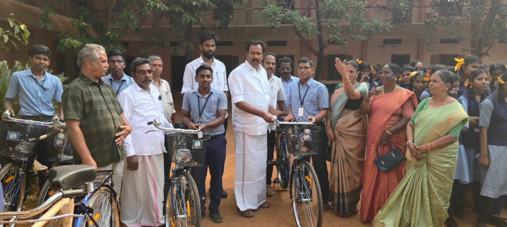 மாணவர்களுக்கு இலவச சைக்கிள் வழங்கினார்.