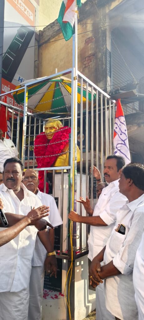 காங்கிரஸ் கட்சியின் 141 – வது நிறுவன நாள் விழாவை முன்னிட்டு கருங்கலில் உள்ள முன்னாள் பாரத பிரதமர் திரு. ராஜீவ் காந்தி அவர்களின் திருவுவ சிலைக்கு மாலை அணிவித்து மரியாதை செலுத்தி காங்கிரஸ் கொடியேற்றி வைத்தார்.