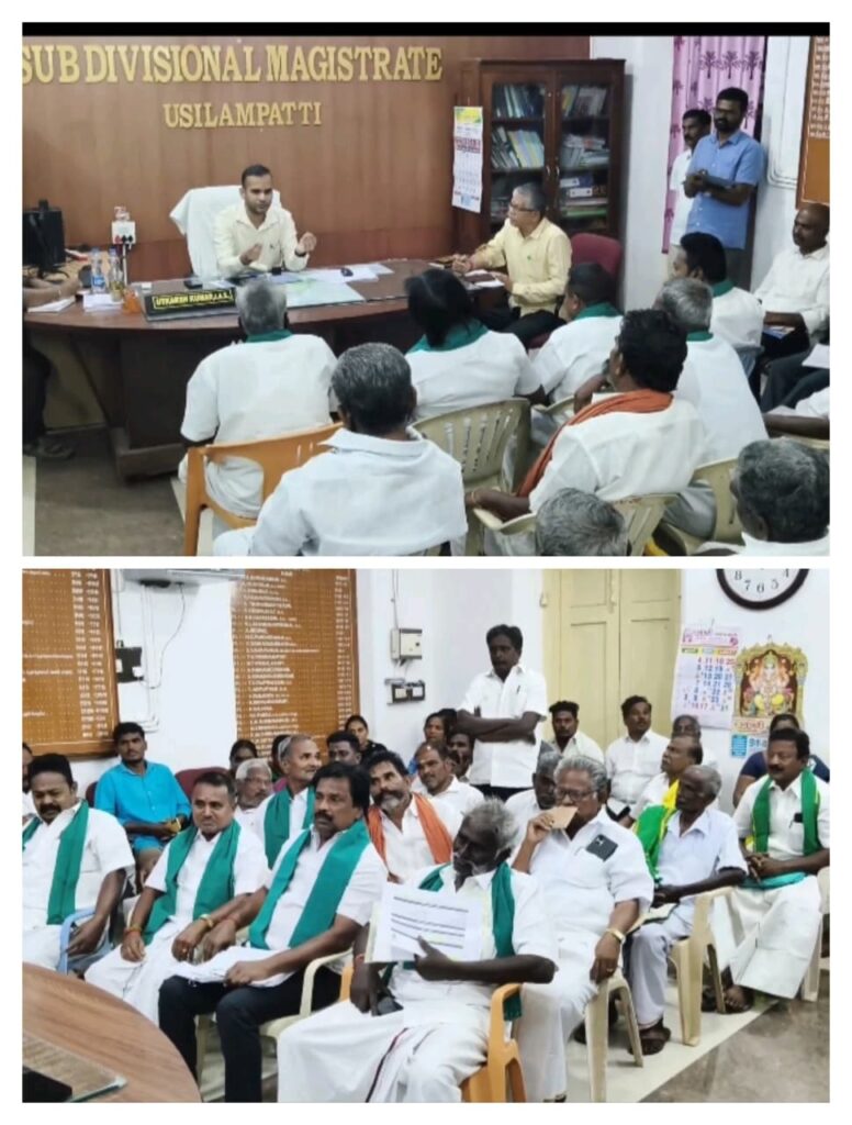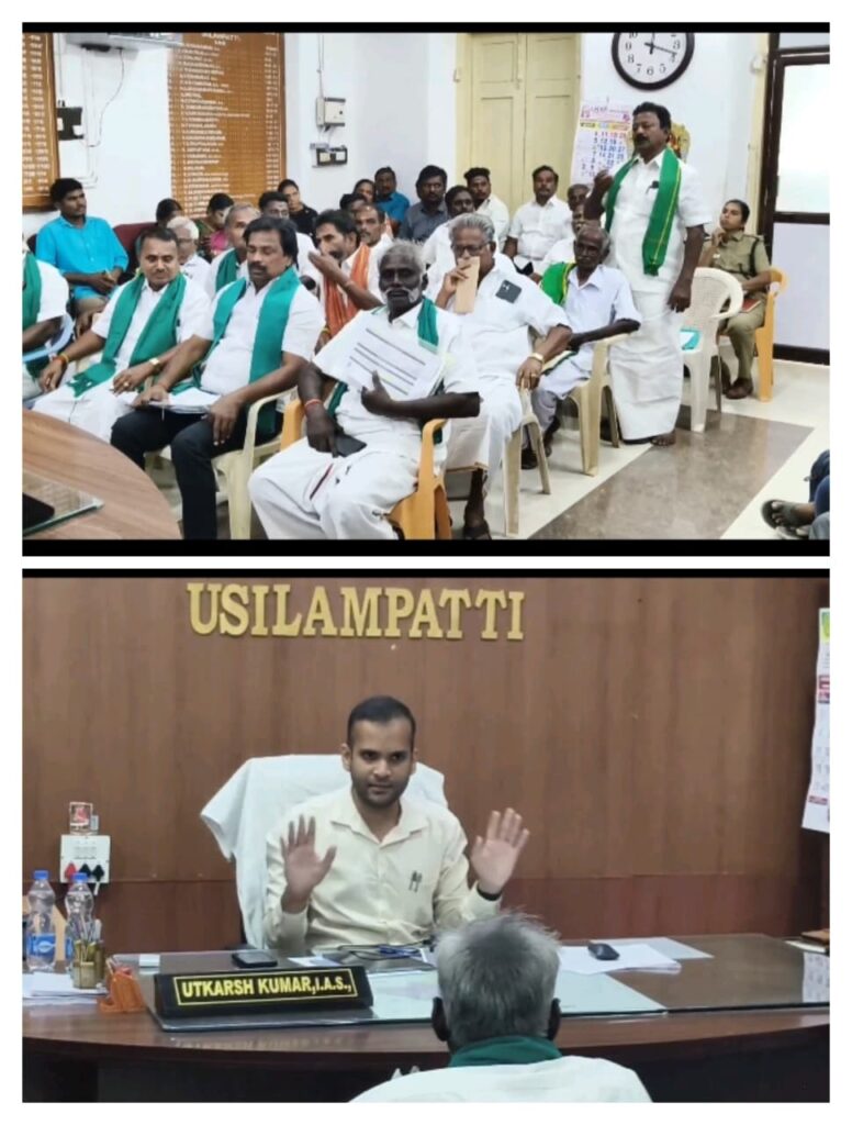 மேலும் விவசாயிகள் குறைதீர்க்கும் கூட்டம் இத்தனை ஆண்டுகளாக வட்டாச்சியர் அலுவலகத்தில் வட்டாச்சியர் தலைமையில் நடைபெற்று வந்த சூழலில், உசிலம்பட்டி வருவாய் கோட்டாச்சியர் அலுவலகத்தில் 30 ஆண்டுகளுக்கு பின் ஐ.ஏ.எஸ்., பதவியுடன் சார் ஆட்சியராக உட்கர்ஷ் குமார் பொறுப்பேற்ற காரணத்தால், முதன்முறையாக விவசாயிகள் குறைதீர்க்கும் கூட்டம் சார் ஆட்சியர் தலைமையில் இன்று நடைபெற்றது விவசாயிகளுக்கு மகிழ்ச்சியை அளித்தது.,