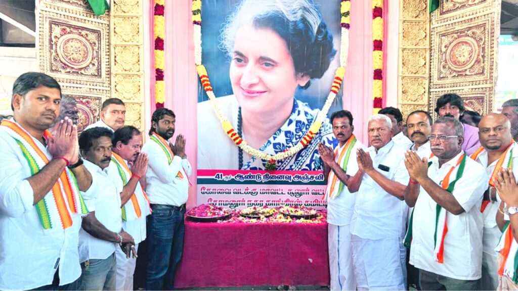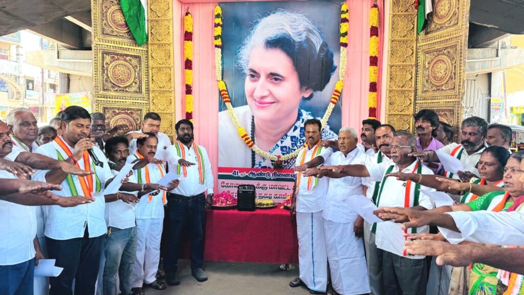 அதனை தொடர்ந்து அன்னை இந்திரா காந்தியின் நினைவு நாளை ஒட்டி அகில இந்திய காங்கிரஸ் கமிட்டி உறுப்பினர் வி. எம். சி. மனோகர் தலைமையில் வடக்கு மாவட்ட காங்கிரஸ் கட்சியின் தலைவர் ரங்கராஜன் முன்னிலையில்