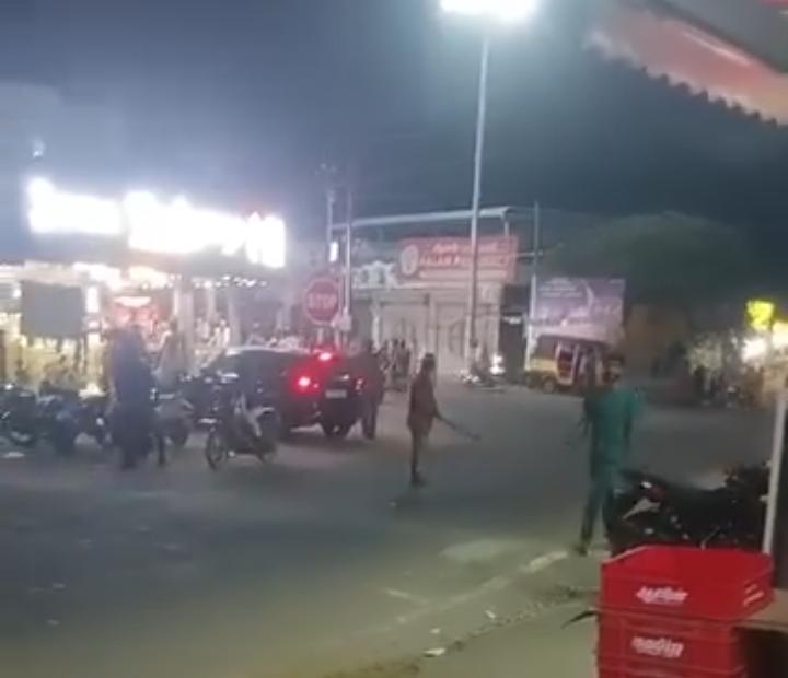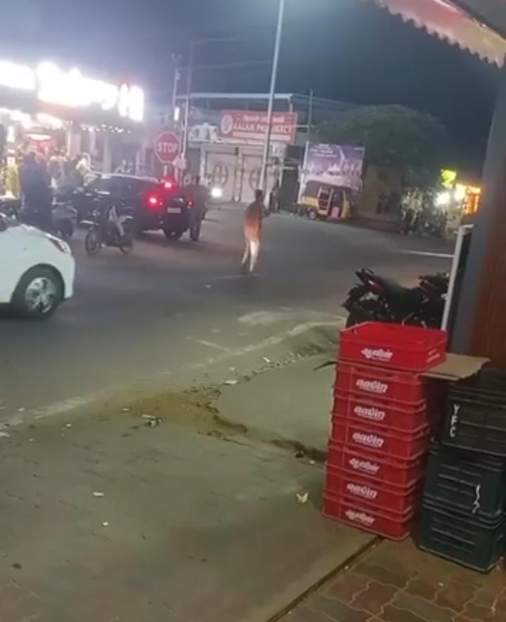 கோவை கந்தே கவுண்டன் சாவடி (எ) கே.ஜி. சாவடி சாலை எப்போதும் போக்குவரத்து நிறைந்து காணப்படும் ஒரு முக்கியப் பகுதியாகும். நேற்று இரவு அந்தப் பகுதியில் மதுபோதையில் வந்த நபர் ஒருவர், சாலையோரம் கிடந்த காய்ந்த தென்னை மட்டையை எடுத்துக் கொண்டு திடீரெனச் சாலையின் நடுவே நின்றார்.