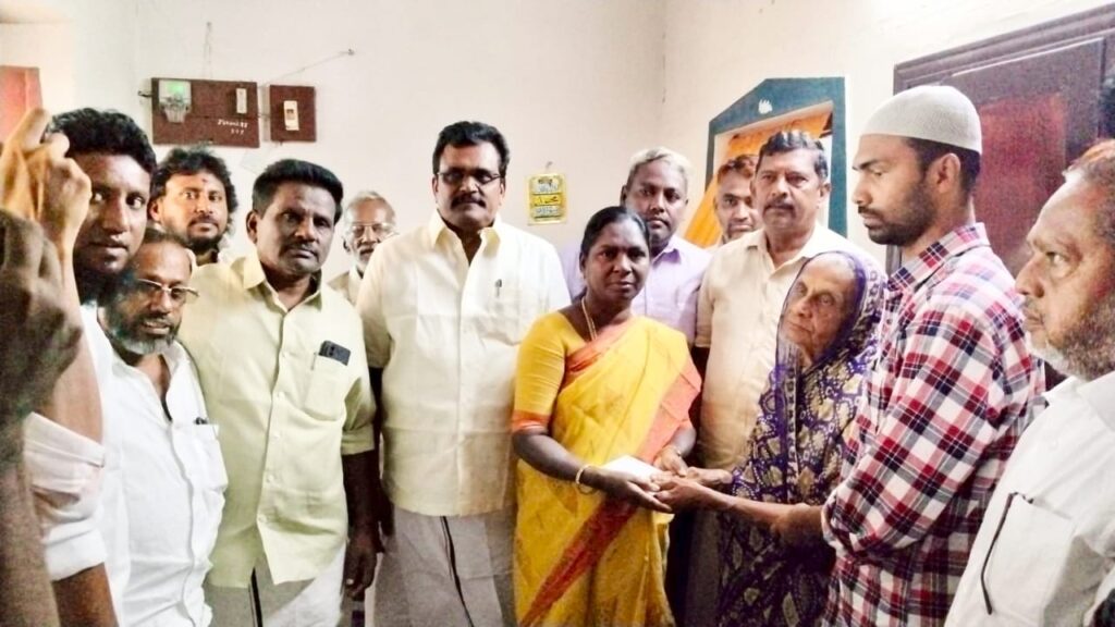 தேனி மாவட்டம் கம்பம் கம்பம்மெட்டு காலனியில் கடந்த சில நாட்களுக்கு முன்பாக மின்சாரம் தாக்கி உயிரிழந்த முகமது இர்பான் என்ற இளைஞர் மற்றும் மகனின் இறப்பு கேட்டு அதிர்ச்சியில் உயிரை இழந்த தந்தை முபாரக் அலி ஆகியோரின் வீட்டுக்கு துக்கம் விசாரிக்கச் சென்ற தேனி எம்பி தங்க தமிழ்ச்செல்வன், இறந்த தந்தை மகன் இழப்பை ஈடு செய்யும் விதமாக அவர்களின் குடும்பத்தாருக்கு ஒரு லட்ச ரூபாய் நிதி உதவியும், கம்பம் நகர மன்ற தலைவர் வனிதா நெப்போலியன் 50 ஆயிரம் ரூபாய் நிதி உதவியும் வழங்கினார்கள்.