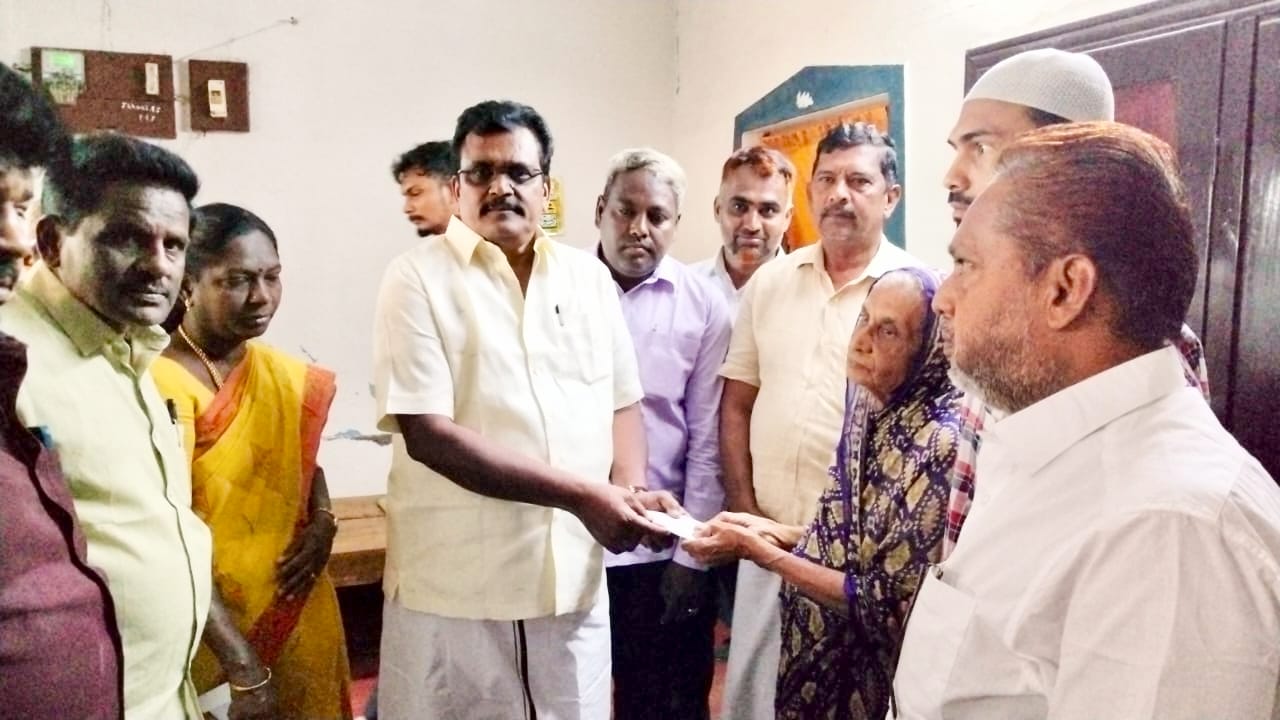 தேனி மாவட்டம் கம்பம் கம்பம்மெட்டு காலனியில் கடந்த சில நாட்களுக்கு முன்பாக மின்சாரம் தாக்கி உயிரிழந்த முகமது இர்பான் என்ற இளைஞர் மற்றும் மகனின் இறப்பு கேட்டு அதிர்ச்சியில் உயிரை இழந்த தந்தை முபாரக் அலி ஆகியோரின் வீட்டுக்கு துக்கம் விசாரிக்கச் சென்ற தேனி எம்பி தங்க தமிழ்ச்செல்வன், இறந்த தந்தை மகன் இழப்பை ஈடு செய்யும் விதமாக அவர்களின் குடும்பத்தாருக்கு ஒரு லட்ச ரூபாய் நிதி உதவியும், கம்பம் நகர மன்ற தலைவர் வனிதா நெப்போலியன் 50 ஆயிரம் ரூபாய் நிதி உதவியும் வழங்கினார்கள்.