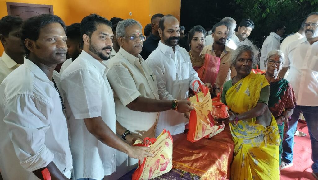 மேலும் விழாவில் ஆயிரம் இருக்கும் மேற்பட்ட மக்களுக்கு அரிசி சர்க்கரை சேமியா உள்ளிட்ட பல்வேறு நலத்திட்ட உதவிகளும் வழங்கப்பட்டது. விழாவில் பச்சை வாழியமான அறக்கட்டளை நிர்வாகிகள் ஐயப்பன் சங்கர் அருள் விக்ரமாதித்யன் ஹரி பிரசாத் உட்பட ஏராளமான இளைஞர்கள் கலந்து கொண்டு வாழ்த்து தெரிவித்தனர்.