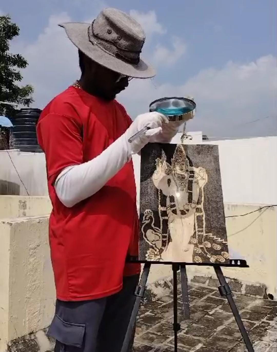 இவர் தற்போது சூரிய ஒளி மற்றும் கண்ணாடி லென்ஸ் மூலமாக ரப்பர் பலகையில் நடப்பு முக்கிய சம்பவங்கள், விளையாட்டு வீரர்கள் சாதனைகள், சினிமா நட்சத்திரங்களின் படங்களை ஓவியமாக சூரிய ஒளி மூலமாக வரைந்து வருகிறார். இந்த நிலையில் தைப்பூசத்தை முன்னிட்டு, தமிழ் கடவுள் முருகனை சூரிய ஒளி மூலமாக வரைந்து அசத்தியுள்ள கார்த்திக் இதை வரைவதற்கு தொடர்ந்து 5 நாட்கள் ஆனதாக தெரிவித்துள்ளார் .