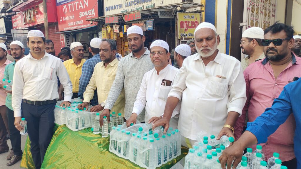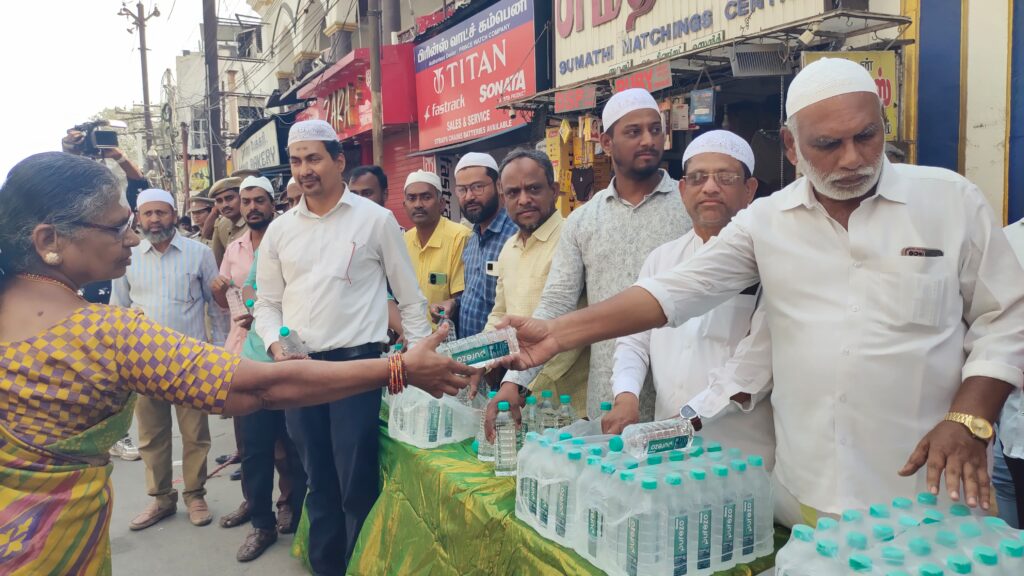 கோவையில் வரலாற்றுச் சிறப்புமிக்க கோனியம்மன் கோவில் தேரோட்டம் விமர்சையாக நடைபெற்றது. ஒப்பணக்கார வீதி வழியே பக்தர்கள் தீச்சட்டி எடுத்தும் ஊர்வலமாகவும் வருவர். அதே வீதி வழியாக தேறும் வடம் பிடித்து இழுத்து வரப்படும். இந்த நிலையில் உச்சி வெயிலில் தீச்சட்டி எடுத்தும் கரகம் எடுத்தும் வந்த பக்தர்களுக்கு ஒப்பணக்கார வீதியில் அமைந்துள்ள மசூதியைச் சேர்ந்த அத்தர் ஜமாத் – ஐ சேர்ந்த இஸ்லாமியர்கள் தண்ணீர் கொடுத்து உபசரித்தனர்.