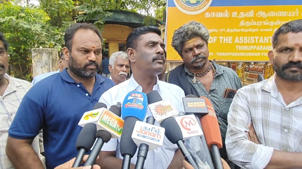 திருப்பரங்குன்றம் பூர்விக கிராமத்தை சேர்ந்தவர்கள் எங்களுக்கு 15, 20 நாட்களாக நெருக்கடி, எந்த தெருவிலும் போக, வர முடியவில்லை. பேரிக்கேடை வைத்து தடுத்து நிறுத்துகிறார்கள். உயர் நீதிமன்றத்தில் உத்தரவு வந்ததையொட்டி மலை உச்சியில் தீபத்தூரில் தீபம் ஏற்றுவது சம்பந்தமாக நாங்கள் கோரிக்கையாக எழுதிக் கொடுத்துள்ளோம்.