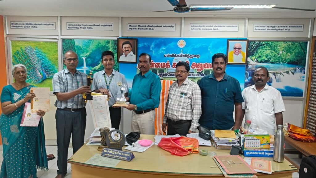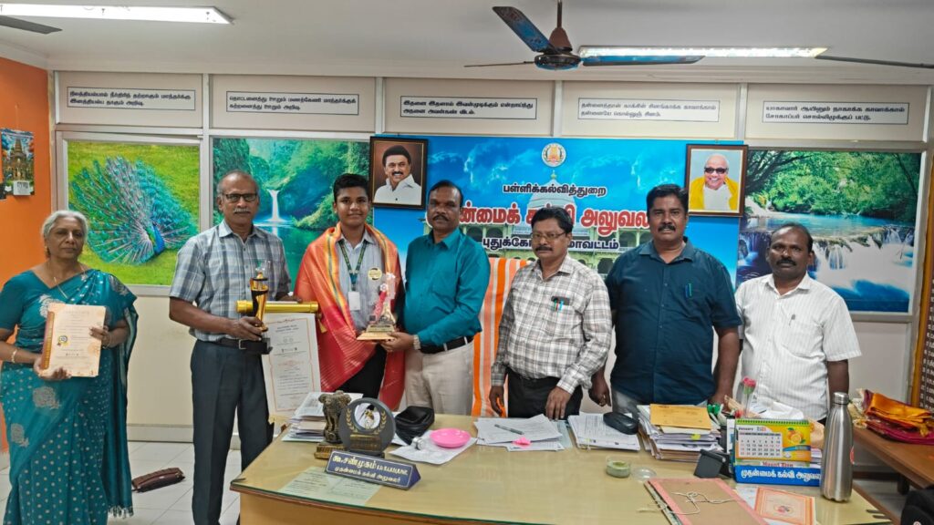 தென்னிந்திய அறிவியல் கண்காட்சி ஒவ்வொரு வருடமும் பள்ளிக் கல்வித் துறையில் பயிலும் அனைத்து வகை உயர் மற்றும் மேல்நிலைப்பள்ளி மாணவர்களுக்கு கல்வி மாவட்ட அளவில் அறந்தாங்கி மற்றும் புதுக்கோட்டையில் நடத்தி மாவட்ட அளவில் புதுக்கோட்டையில் நடத்தி முதலிடம் பிடித்த மாணவன் ஒரு ஆசிரியர் மட்டும்