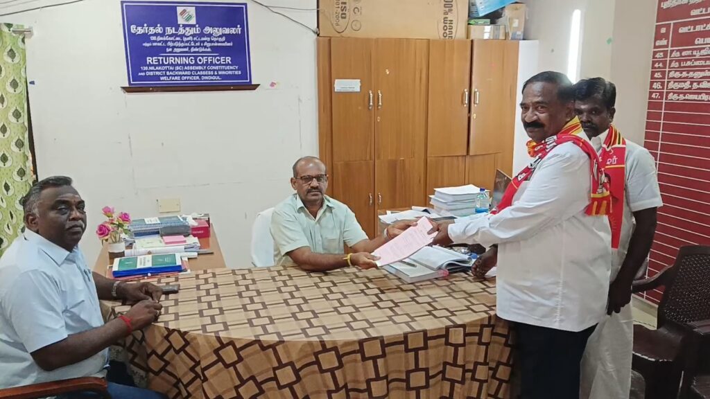 நேற்று நாம் தமிழர் கட்சி வேட்பாளராக டாக்டர் கயிலை ராஜன் தனது வேட்பு மனுவை தேர்தல் நடத்தும் அலுவலர் சுகுமாரிடம் தாக்கல் செய்தார். அவருடன் ஒருங்கிணைப்பாளர் சங்கிலி பாண்டியன், ஸ்டீபன் ஆகியோர் உடன் வந்து இருந்தனர். முன்னதாக நிலக்கோட்டை பஸ் நிலையத்தில் இருந்து ஊர்வலமாக புறப்பட்டு வேட்பு மனு தாக்கல் செய்தனர்.