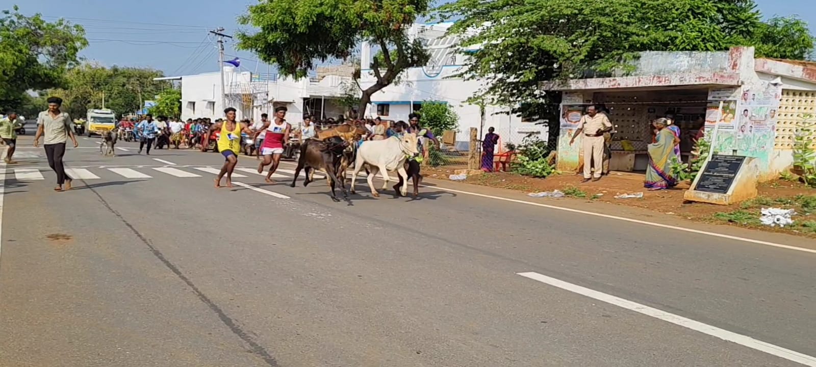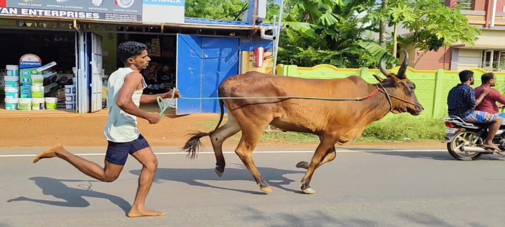 மாட்டின் கழுத்தில் கட்டப்பட்டுள்ள கயிற்றைப் பிடித்துக் கொண்டு மாடு உரிமையாளர்கள் ஓடும் நிலையில், வெற்றி பெற்ற மாட்டிற்கு முதல் பரிசாக 6025 ரூபாய் ரொக்கத் தொகை பரிசாக வழங்கப்பட்டது.