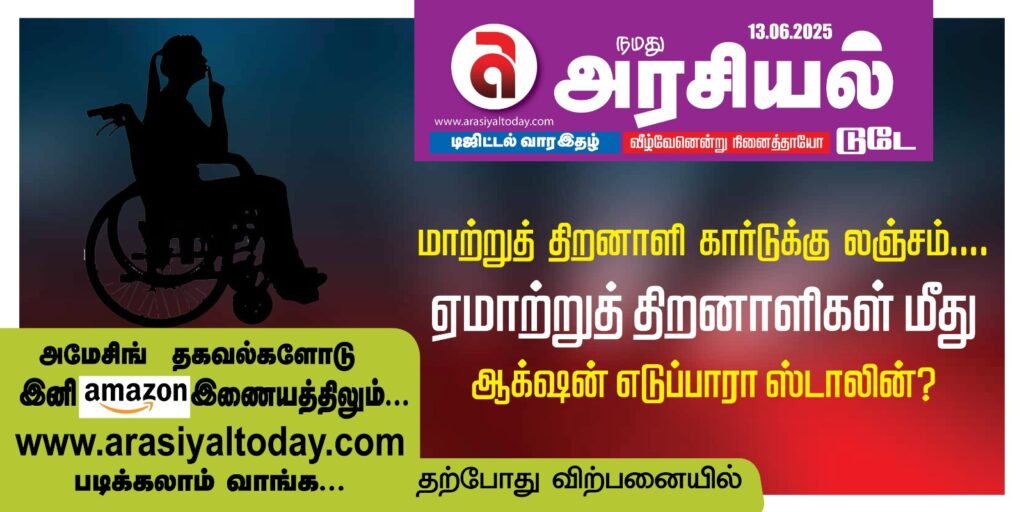 👆 இந்த லிங்கை டச் செய்து படித்துக் கொள்ளுங்கள்!அனைவருக்கும் ஷேர் செய்யுங்கள் … மாற்றுத்திறனாளி கார்டுக்கு லஞ்சம் …ஏமாற்று திறனாளிகள் மீது ஆக் ஷன் எடுப்பாரா ஸ்டாலின்?