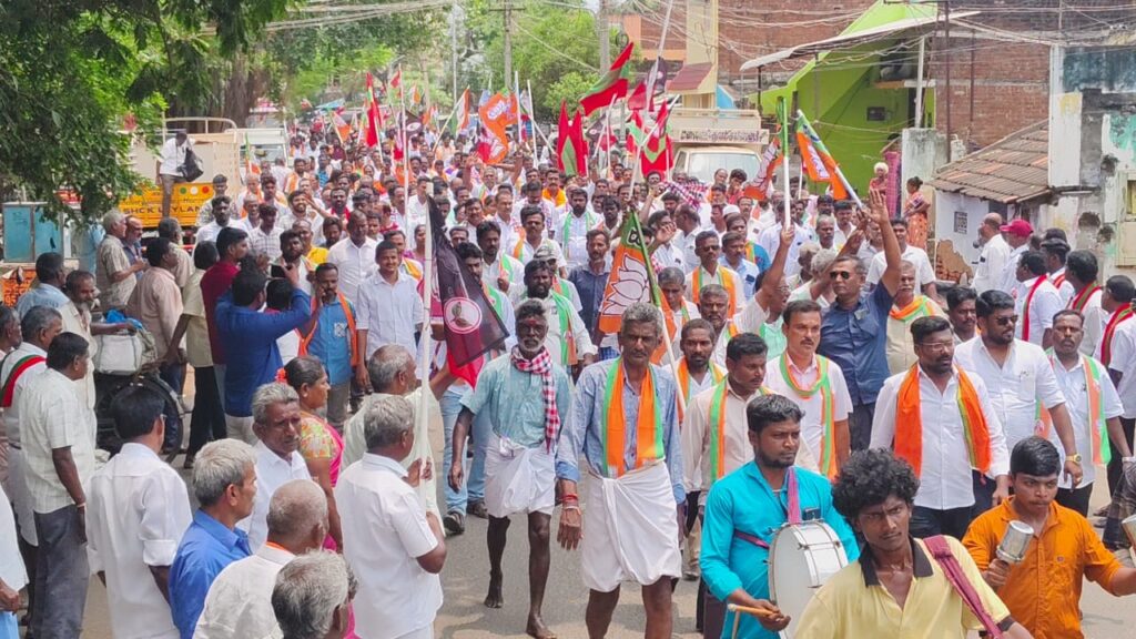 இராஜபாளையம் வட்டாட்சியர் அலுவலகத்தில் கூட்டணி கட்சியை சேர்ந்த அதிமுக பாரதிய ஜனதா ,தமிழ் மாநில காங்கிரஸ் மற்றும் கூட்டணி கட்சி சார்ந்த தொண்டர்கள் என சுமார் 1000க்கும் மேற்பட்டோர் ஊர்வலமாக வந்து வட்டாட்சியர் அலுவலகத்தில் தேர்தல் அதிகாரி அமர்நாத்திடம் வேட்பு மனு தாக்கல் செய்தார் மாற்று வேட்பாளராக ஜான்பாண்டியனின் மகள் வேட்பு மனு தாக்கல் செய்தார்.