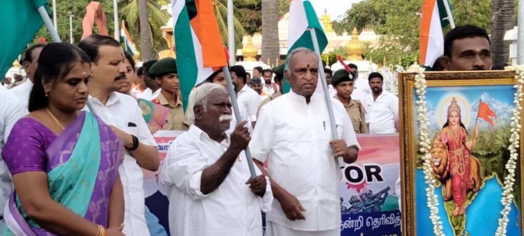 ஆப்ரேஷன் சிந்தூர் வெற்றிகரமாக நடத்தி முடித்த நமது பாரத தேசத்தின் முப்படை வீரர்களுக்கும், பாரதப் பிரதமர் நரேந்திர மோடி அவர்களுக்கும் நன்றியை தெரிவிக்கும் வகையில் 140 கோடி மக்களும் ராணுவத்தின் பின்னால் இருப்பதை உணர்த்தும் வகையில் பாரத தேச மக்களின் நம்பிக்கை மற்றும் ஒற்றுமையை வெளிப்படுத்துவதற்காக பாரதிய ஜனதா கட்சி சார்பில் நாடு முழுவதும் தேசியக்கொடி ஏந்தி தேசிய ஒற்றுமை பேரணி நடைபெற்று வருகிறது.