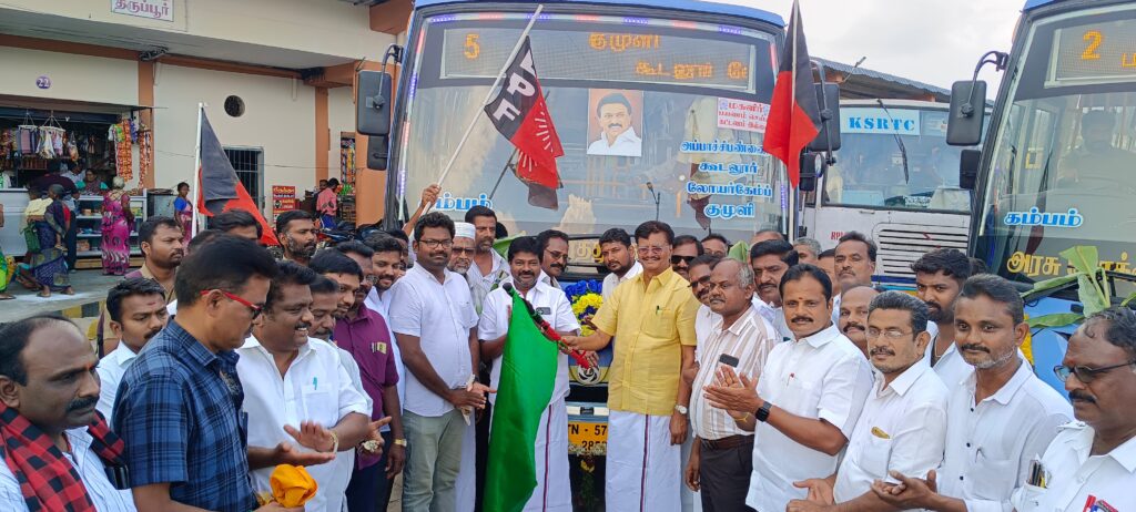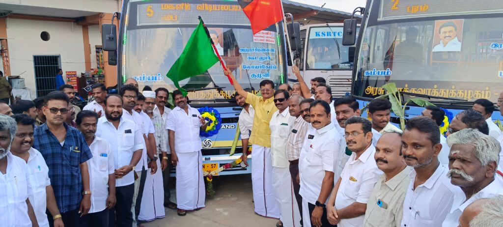 எம்எல்ஏ ராமகிருஷ்ணன் இதுகுறித்து துறை அமைச்சரிடம் மக்களின் கோரிக்கையை வைத்தார். இதை அடுத்து இந்த இரு வழி தடத்திற்கும் “மகளிர் விடியல் பயணம்” என்ற பெண்களுக்கான இலவச பயணம் செய்யும் புதிய பேருந்துகள் வழங்கப்பட்டது. இந்த புதிய பேருந்துகள் வழித்தடத்தில் இயக்கப்படும் நிகழ்வு கம்பம் புது பேருந்து நிலையத்தில் நடைபெற்றது. கம்பம் எம்எல்ஏ ராமகிருஷ்ணன் கொடி அசைத்து புதிய பேருந்துகளை வழித்தடத்தில் இயக்கி வைத்தார்.