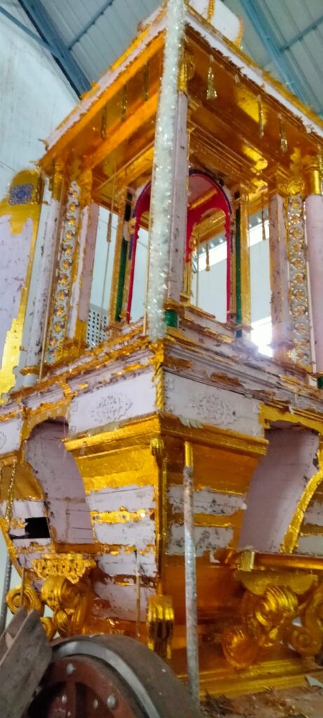 புதிய தேர் உருவாக்க செலவாக ரூ.35 லட்சம் என திட்டமிடப்பட்டுள்ளதாகவும். புதிய தேரின் உயரம் 31 அடி, அகலம் 12 அடி என தேர் வேலையை செய்யும் பணியை