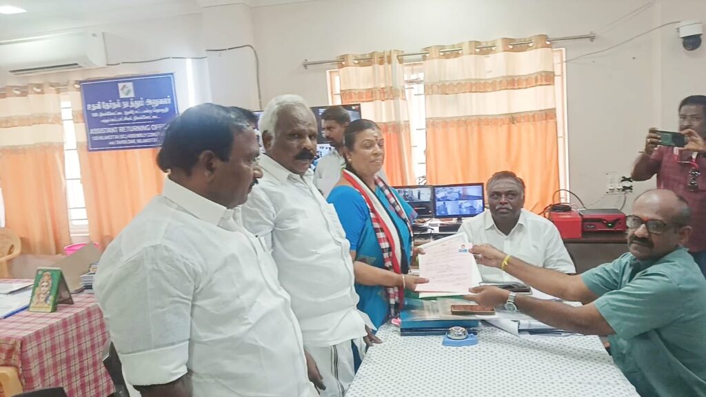 அப்போது உடன் நிலக்கோட்டை கிழக்கு ஒன்றிய செயலாளர் யாகப்பன், பெரம்பலூர் முன்னாள் எம்.பி மருதராஜா, தேர்தல் நடத்தும் உதவி அலுவலர் ஜெயப்ரகாஷ் உட்பட பலர் இருந்தனர், அதிமுக வேட்பாளர் எஸ் தேன்மொழி சேகருக்கு 80 லட்சத்து 50 ஆயிரம், அசையும் சொத்து 2 கோடியே 40 லட்சம், கடன் 84 லட்சம் கடன் இருப்பதாக குறிப்பிட்டு இருந்தார். அதேபோன்று அவரது கணவர் சேகருக்கு அசையும் சொத்து 44 லட்சமும், அசையா சொத்து 11 கோடியே 41 லட்சமும், அவரது பெயரில் கடன் ஒரு கோடியே 14 லட்சம் இருப்பதாக மனுவில் தாக்கல் செய்யப்பட்டுள்ளது.