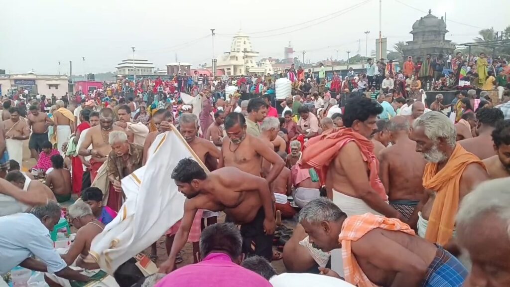 கன்னியாகுமரி மூன்று கடல் சங்கமம் பகுதியில் தை அமாவாசையான இன்று முக்கடலும் சங்கமிக்கும் கன்னியாகுமரி கடலில் ஆயிரக்கணக்கான பக்தர்கள் புனித நீராடி மறைந்த முன்னோர்களுக்கு தர்ப்பணம் கொடுத்தனர்.