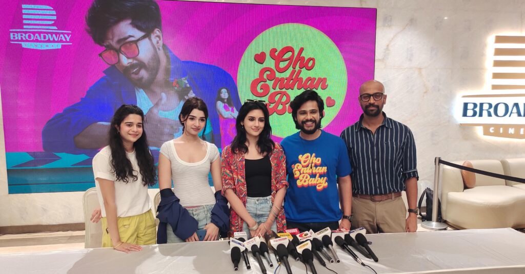 தமிழ் சினிமாவின் முன்னனி நடிகரான விஷ்ணு விஷாலின் விஷ்ணு விஷால் ஸ்டூடியோஸ், ரோமியோ பிக்சர்ஸ் மற்றும் டி-கம்பெனி இணைந்து தயாரித்துள்ள ஓஹோ எந்தன் பேபி திரைப்பட குழுவினர் கோவை அவினாசி சாலையில் உள்ள பிராட்வே சினிமாஸ் அரங்கில் செய்தியாளர்களை சந்தித்து பேசினர்..