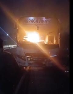 கோவையில் இருந்து திருச்சி செல்வதற்காக 15 பயணிகளை ஏற்றிக்கொண்டு திருப்பூர் மாவட்டம் பல்லடம் அருகே உள்ள திருச்சி தேசிய நெடுஞ்சாலை பெரும்பாளி பகுதியில் சென்று கொண்டிருந்த பொழுது பேருந்தின் இஞ்சின் பகுதியில் இருந்து திடீரென புகை வந்துள்ளது.