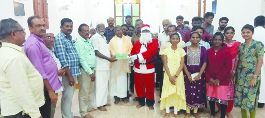 கிறிஸ்துமஸ் பண்டிகையை முன்னிட்டு இந்திய தேசிய லீக் கட்சி சார்பில் சிவகாசியில் உள்ள சி.எஸ்.ஐ. தேவாலயத்தில் வழிபாடு செய்து கொண்டிருந்தவர்களிடம் இந்திய தேசிய லீக் மாநில செயலாளர் செய்யது ஜகாங்கீர் மற்றும் நிர்வாகிகள் நேரில் சென்று கிறிஸ்துமஸ் வாழ்த்துக்கள் தெரிவித்து கேக் வழங்கி அன்பினை தெரிவித்தனர்.
