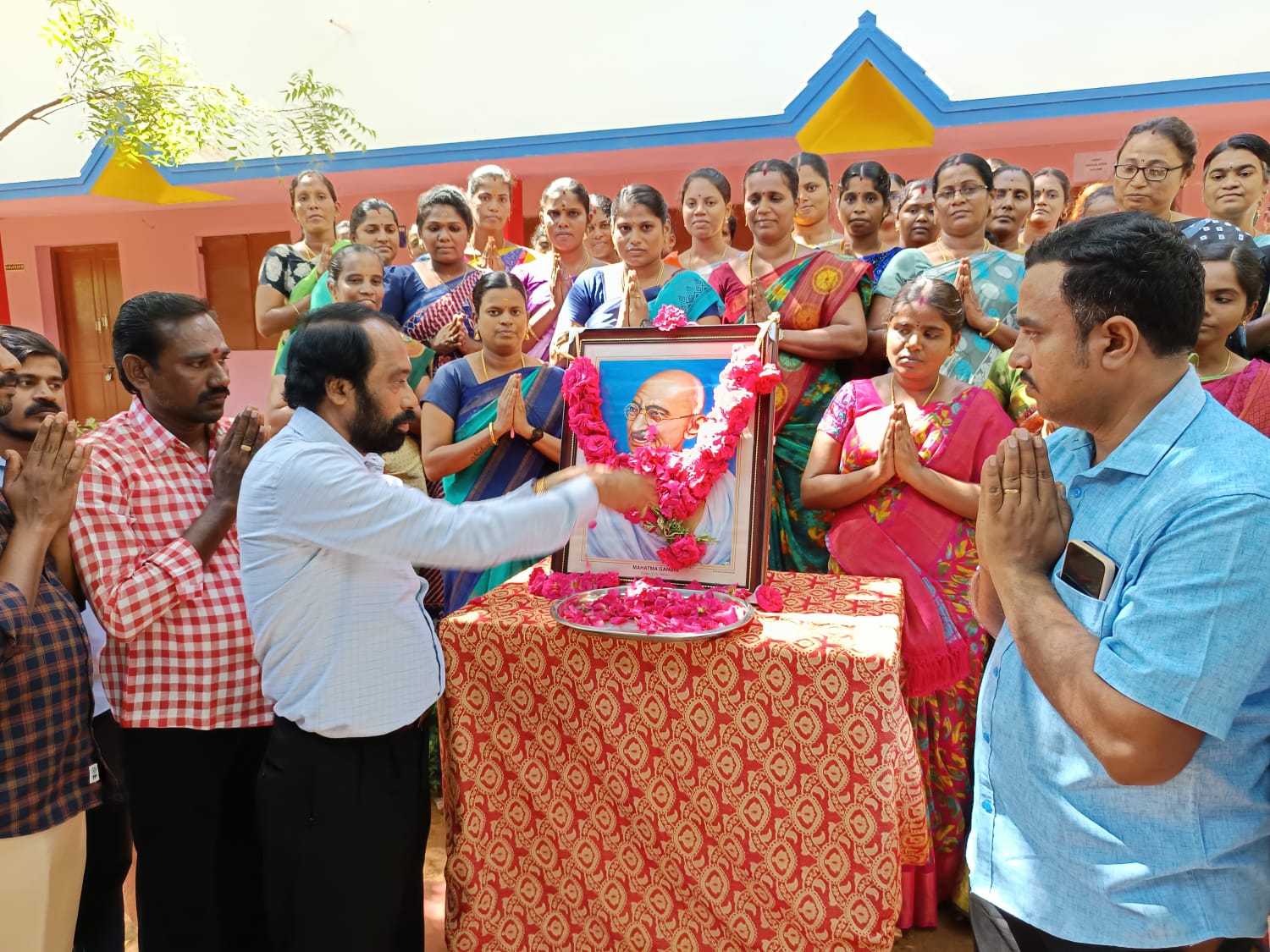 தொடர்ந்து தேசபக்தி பாடல்களும் இசைக்கப்பட்டது. இதனைத் தொடர்ந்து அனைத்து ஆசிரியர்களும், மகாத்மா காந்தியின் திருவுருவச்சிலைக்கு மாலை அணிவித்தும், அவரது திருவுருவப் படத்திற்கு மலர் தூவியும் மரியாதை செலுத்தினர். இவ்விழாவிற்கான ஏற்பாடுகளை பள்ளி தலைமையாசிரியர் தியாகராஜன் உடற்கல்வி ஆசிரியர் தியாகராஜ, சரவணன் பொறுப்பாசிரியர்கள் சந்திரசேகர், மகரஜோதி, சக்திவேல், ஜெயமணி ஆகியோர் செய்திருந்தனர்.
