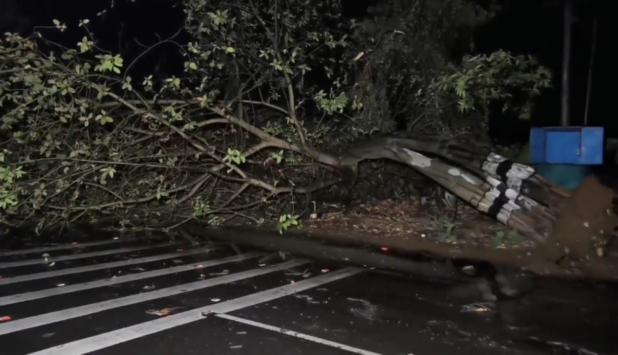 திருப்பூர் மாவட்டம் பல்லடம் சுற்றுவட்டார பகுதிகளில் இன்று காலை முதல் வெயில் வாட்டி வதைத்து வந்த நிலையில் இன்று மாலை சூறாவளி காற்றுடன் பலத்த மழை பெய்தது. இதில் திருப்பூர், மங்கலம், பொள்ளாச்சி, உடுமலை ,திருச்சி கோவை, மற்றும் தென் மாவட்டங்கள் செல்லும் சாலைகளில் பல்வேறு பகுதிகளில் சாலை ஓரமாக உள்ள ராட்சத மரங்கள் மற்றும் தனியார் நிறுவனங்களின் இணையத்தள பயன்பாட்டிற்காக வைக்கப்பட்டிருந்த இணைய கம்பங்கள் மற்றும் மின் கம்பங்கள் சாய்ந்தன.