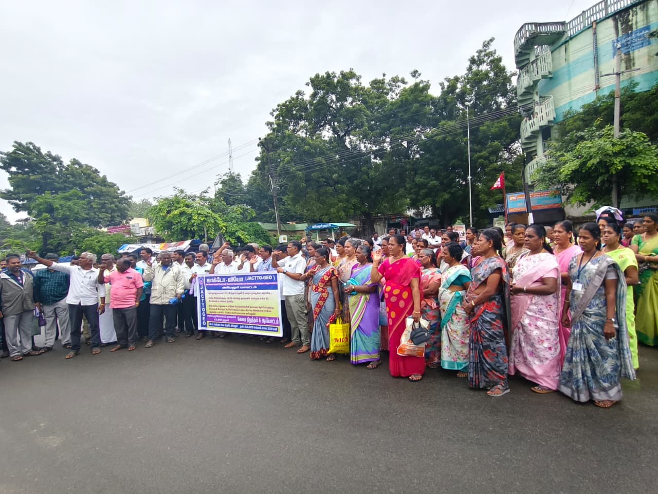 கட்டுமான தொழிலாளர்களுக்கு மாத ஓய்வூதியமாக ரூபாய் 3 ஆயிரம் வழங்க வேண்டும் என்று வலியுறுத்தி சிஐடியூ சார்பாக ஆர்ப்பாட்டம் நடைபெற்றது. இன்று ஆட்சியர் வளாகத்தில் அமைந்துள்ள தொழிலாளர் நல வாரியம் முன்பாக நடைபெற்ற இந்த ஆர்ப்பாட்டத்திற்கு மாவட்டத் தலைவர் முருகேசன் தலைமை…